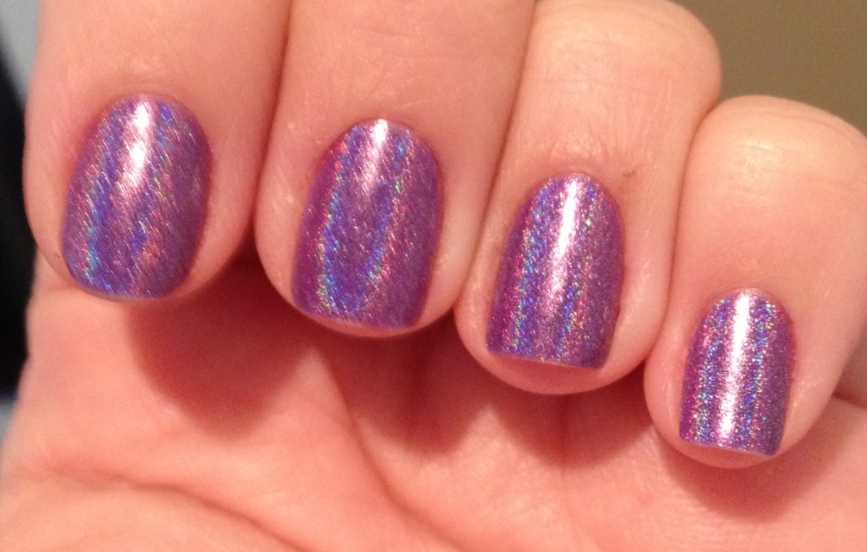 Meninas, hoje vou mostrar pra vocês o meu esmalte favorito !! Esse com certeza ganha de todos que eu já mostrei até agora. É o holográfico prata da Color Club, Harp On It. É o holográfico mais linear e forte que já vi pessoalmente. Segundo outros blogs não perde pros holográficos da Layla que custam o dobro desse. Eu tinha comprado 4 cores diferentes, mas depois que experimentei o Harp On It voltei na loja pra comprar os outros 2 da coleção.